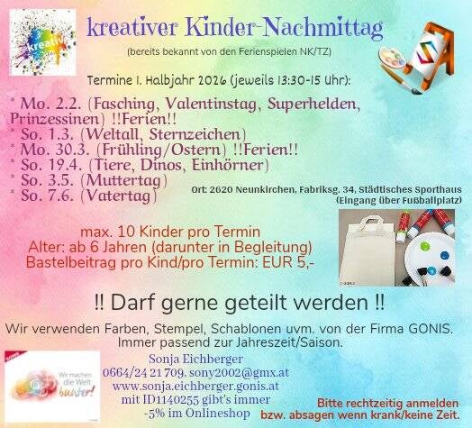 Die Bastel-Nachmittage sind immer ein Highlight für meine Kinder! Sie kommen jedes Mal mit leuchtenden Augen und tollen Kunstwerken nach Hause. Die Betreuung ist super und die GONIS Produkte sind einfach klasse.